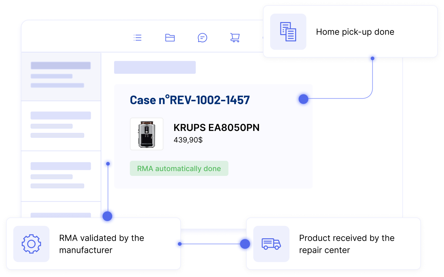 Manufacturers and repair providers receive all cases — returns, repairs, refunds — from every retailer and sales channel on a single platform. This eliminates data silos and gives every stakeholder real-time access and improved responsiveness.